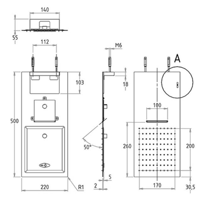 Ducha mural de acero ultrafina tamaño 500x200 mm chorros de lluvia y cascada cromo cromado QU508