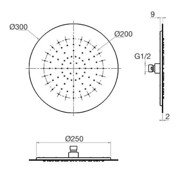 GABOLI FRATELLI WELLNESS ROCIADOR REDONDO Ø 300MM UN CHORRO DE ACERO INOXIDÁBLE