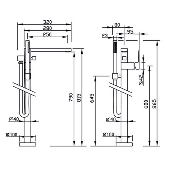 GABOLI FRATELLI STORM MEZCLADOR DE SUELO PARA BAÑERA CON DESVIADOR Y DUCHA