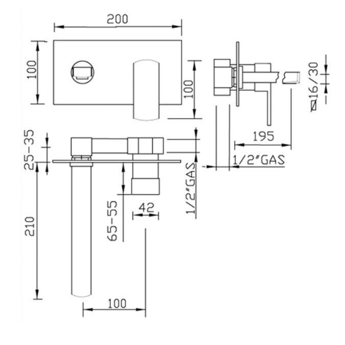 GABOLI FRATELLI H2Q MEZCLADOR LAVABO EMPOTRADO CON CAÑO DE PARED