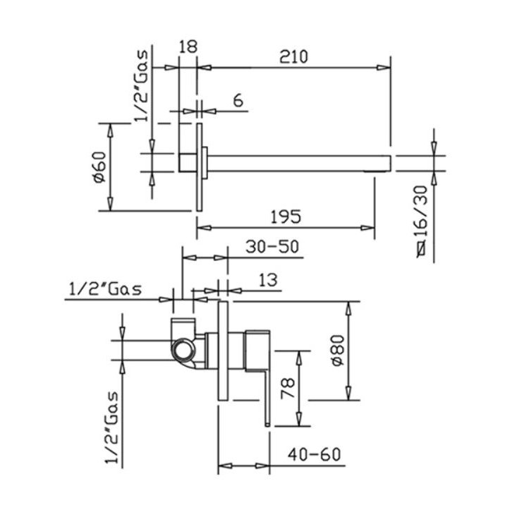 GABOLI FRATELLI H2Q MEZCLADOR LAVABO EMPOTRADO CON CAÑO DE PARED