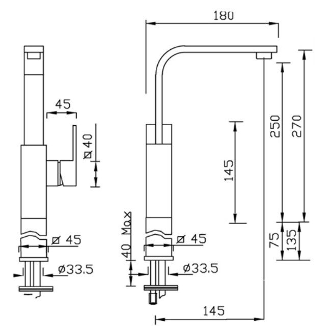GABOLI FRATELLI NEW SPACE MEZCLADOR DE LAVABO, CAÑO GIRATORIO Y EXTENSIÓN 70 MM