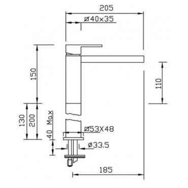 GABOLI FRATELLI OPEN SPACE MEZCLADOR DE LAVABO CAÑO LARGO Y EXTENSIÓN 130MM