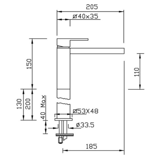 GABOLI FRATELLI OPEN SPACE MEZCLADOR DE LAVABO CAÑO LARGO Y EXTENSIÓN 200MM