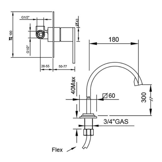 GABOLI FRATELLI KLIP CAÑO ALTO FIJO PARA LAVABO CON MEZCLADOR EMPOTRADO
