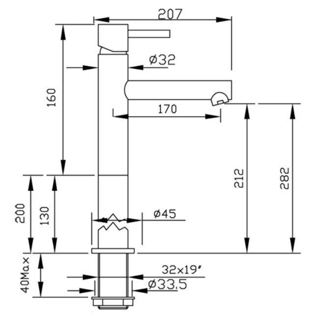 GABOLI FRATELLI HEOS MEZCLADOR DE LAVABO CAÑO LARGO Y EXTENSIÓN 200MM