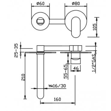 GABOLI FRATELLI MÏA MEZCLADOR LAVABO EMPOTRADO CON CAÑO DE PARED