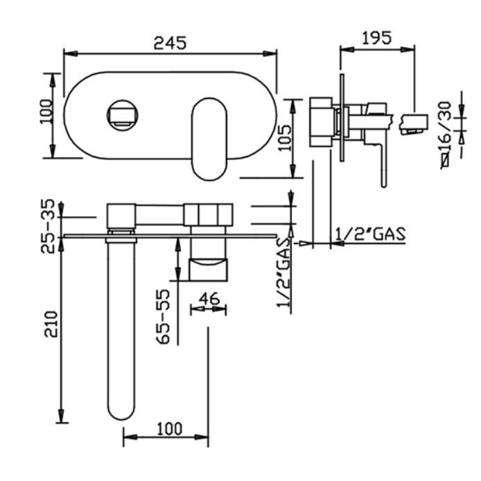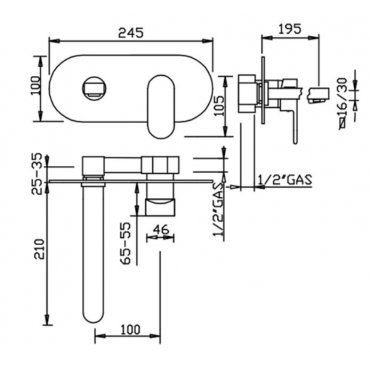 GABOLI FRATELLI MÏA MEZCLADOR LAVABO EMPOTRADO CON CAÑO DE PARED