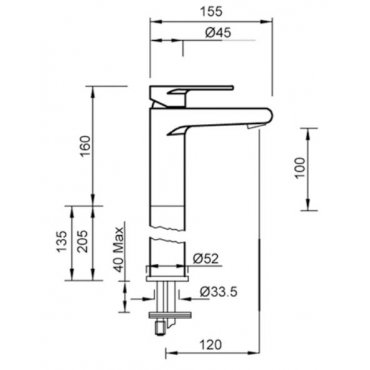 GABOLI FRATELLI KYRO MEZCLADOR DE LAVABO CON EXTENSIÓN 200MM
