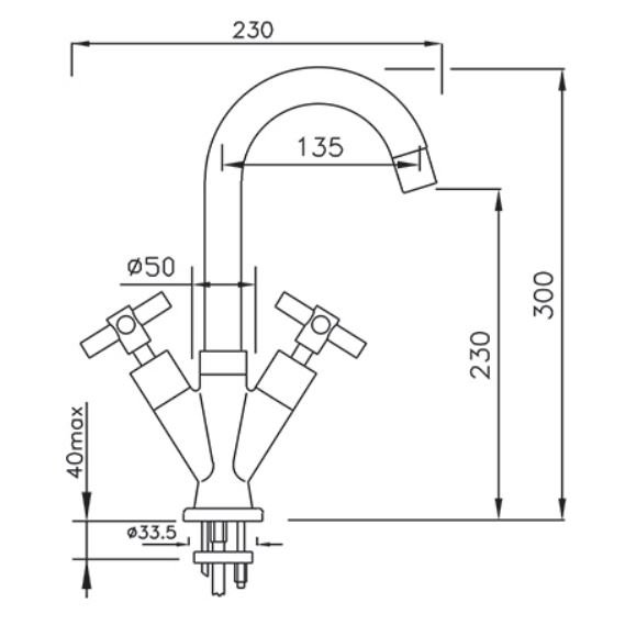 GABOLI FRATELLI YUPPI MEZCLADOR PARA LAVABO CAÑO ALTO GIRATORIO Y DESAGÜE