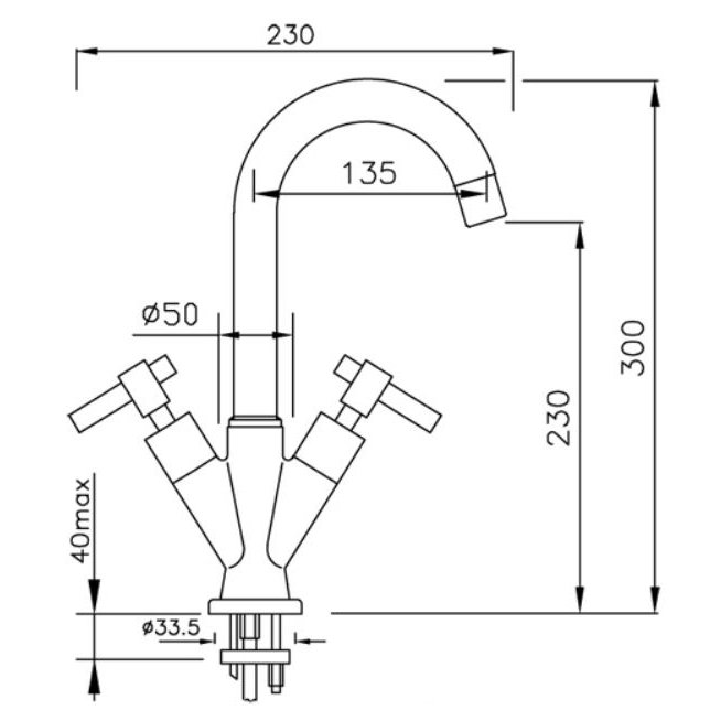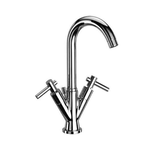 Mezclador de lavabo de un orificio con caño alto giratorio y desagüe automático cromo cromado 976