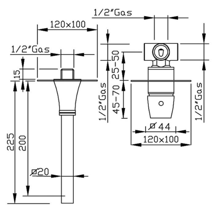 GABOLI FRATELLI PARENTESI MEZCLADOR LAVABO EMPOTRADO CON CAÑO DE PARED