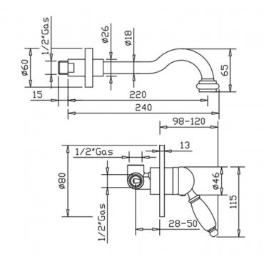 GABOLI FRATELLI PARENTESI MEZCLADOR LAVABO EMPOTRADO CON CAÑO DE PARED