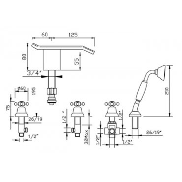 GABOLI FRATELLI PAPIRO CONJUNTO BORDE BAÑERA 5 ORIFICIOS CON CASCADA Y SET DUCHA