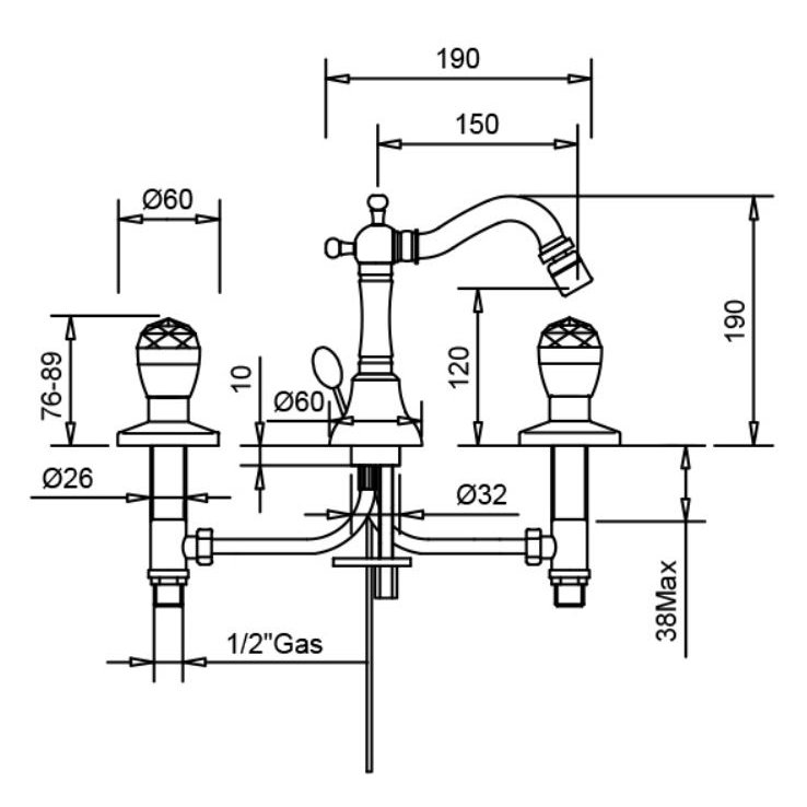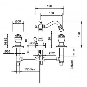GABOLI FRATELLI MY BIJOUX CONJUNTO GRIFOS 3 ORIFICIOS CAÑO GIRATORIO Y DESAGÜE