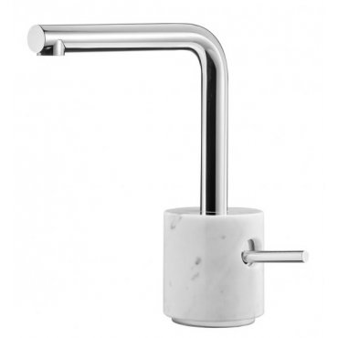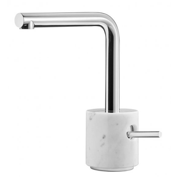 El clasicismo del mármol se combina con las prestaciones del cromo. La piedra está trabajada a mano y esconde en su interior una batidora compacta de alto rendimiento.