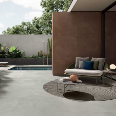 El imán se convierte en la mejor solución también para aplicaciones exteriores, cerca de piscinas o jardines. Además de las losas, la serie se amplía con el mosaico Oxyde, que refleja tonos metálicos iridiscentes.