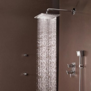Las diferentes variantes incluyen cascada, ducha de lluvia con brazo de pared horizontal o vertical, duchas laterales y de techo con cromoterapia LED RGB.