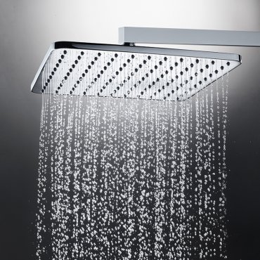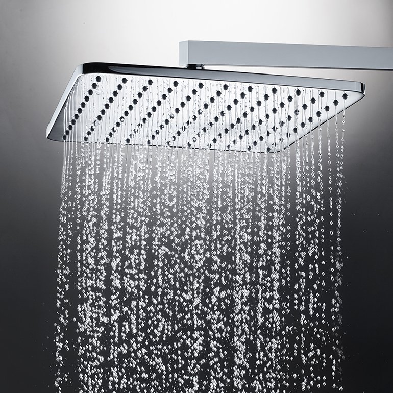 Las diferentes variantes incluyen cascada, ducha de lluvia con brazo de pared horizontal o vertical, duchas laterales y de techo con cromoterapia LED RGB.