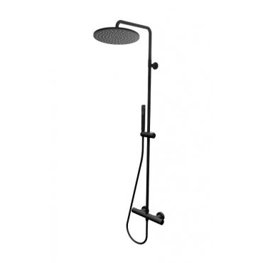 Columna ducha en latón con sección Ø 20 mm - rociador COSMO Ø 280 mm - mango ducha ZEN - soporte mango ducha orientable - CROMOLUX 150 cm con conexión ½” H y cono - mezcaldor termostático exterior con desviador integrado.