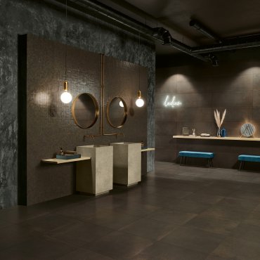 El efecto metálico que la serie confiere a los pavimentos y revestimientos recuerda un estilo único, moderno y minimalista, adecuado para cualquier tipo de ambiente, tanto residencial como comercial.
