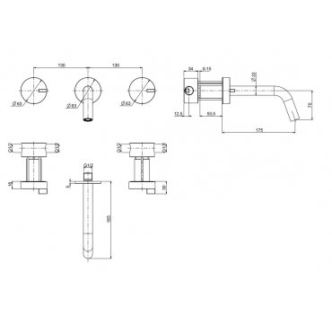 QUADRO DESIGN Q MEZCLADOR MURAL DE 3 AGUJEROS CON CAÑÓN DE 175 MM Mezclador de pared con caño 18 10 V AS