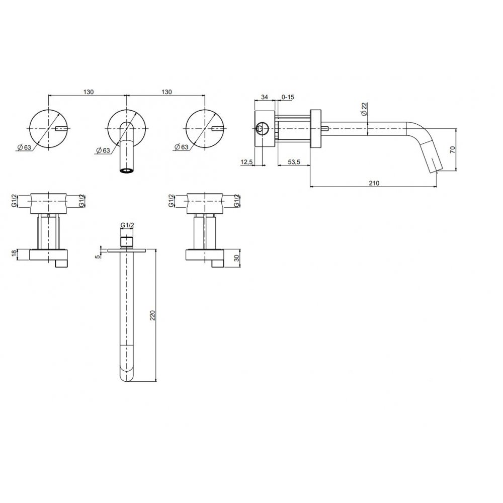 QUADRO DESIGN Q MEZCLADOR MURAL DE 3 AGUJEROS CON CAÑÓN DE 210 MM Mezclador de pared con caño 18 11V AS