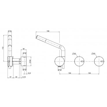 Una línea que representa el diseño de la grifería de forma minimalista y geométrica. Q de Quadro es una serie con alma moderna, en acero inoxidable con acabado cepillado y mate.