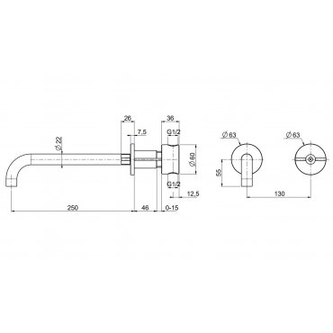 QUADRO DESIGN VALVOLA01 MEZCLADOR MURAL DE 2 AGUJEROS CON CAÑÓN DE 250 MM