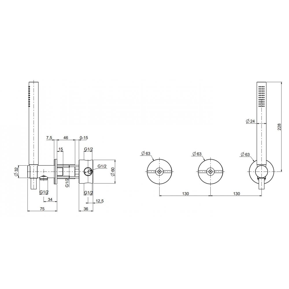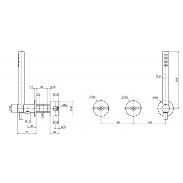 QUADRO DESIGN VALVOLA01 2 MEZCLADORES DE BAÑERA/DUCHA CON DUCHA DE MANO