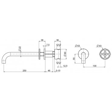 QUADRO DESIGN VALVOLA02 MEZCLADOR MURAL DE 2 AGUJEROS CON CAÑÓN DE 250 MM
