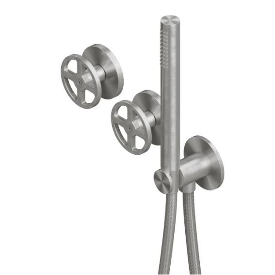 Valvola02 de Quadro es una colección de grifería de estilo industrial con acabado cepillado y mate.