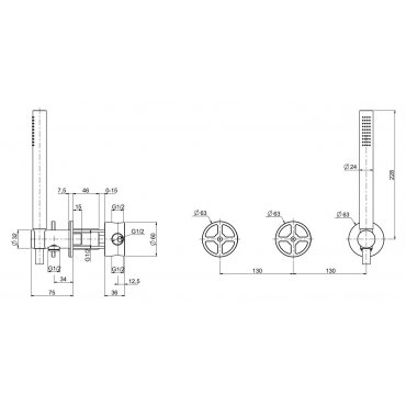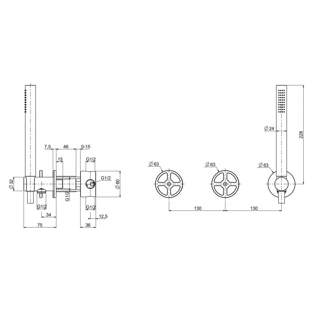 QUADRO DESIGN VALVOLA02 2 MEZCLADORES DE BAÑERA/DUCHA CON DUCHA DE MANO
