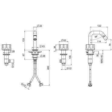 QUADRO DESIGN MODO MEZCLADOR DE BIDÉ DE 3 AGUJEROS H 133 MM