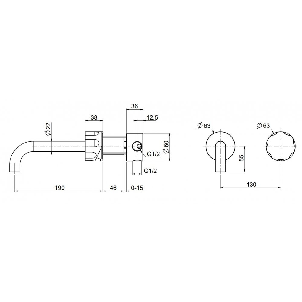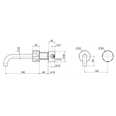 QUADRO DESIGN MODO MEZCLADOR MURAL DE 2 AGUJEROS CON CAÑÓN DE 190 MM