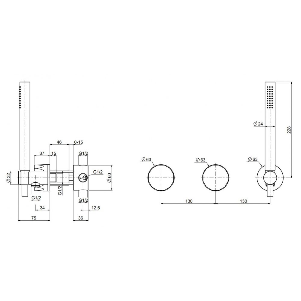 QUADRO DESIGN HB 2 MEZCLADORES DE BAÑERA/DUCHA CON DUCHA DE MANO