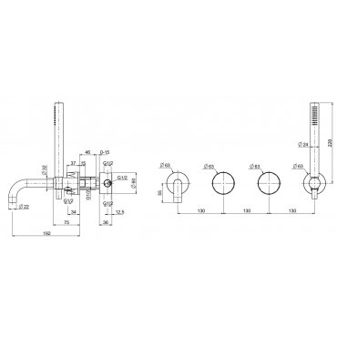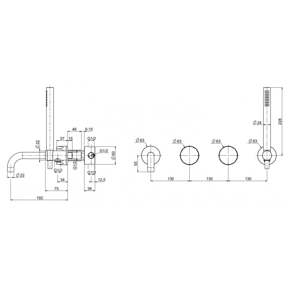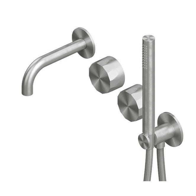 Grupo de 2 mezcladores hidroprogresivos de pared con kit de ducha y caño L.190mm.