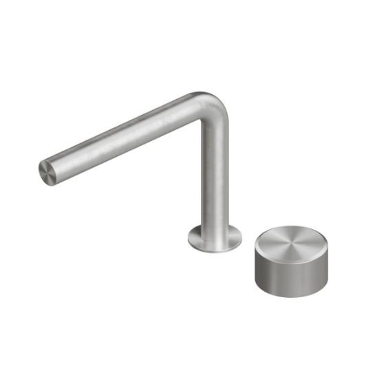Los grifos Stereo tienen un acabado cepillado y garantizan el ahorro de agua, gracias a la instalación de aireadores con un caudal de 5 lt/min.