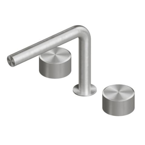 Los grifos Stereo tienen un acabado cepillado y garantizan el ahorro de agua, gracias a la instalación de aireadores con un caudal de 5 lt/min.