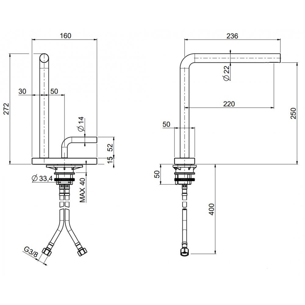 QUADRO DESIGN LEVO MEZCLADOR DE LAVABO DE UN AGUJERO