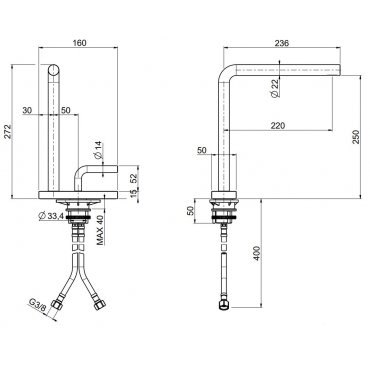 Para garantizar el ahorro de agua, los caños de lavabo y bidé de Quadro están equipados con aireadores con un caudal de 5 l/min, con la posibilidad de ser sustituidos por aireadores con un caudal superior.