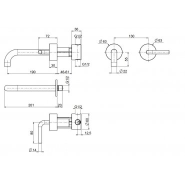QUADRO DESIGN LEVO MEZCLADOR MURAL DE 2 AGUJEROS CON CAÑÓN DE 190 MM