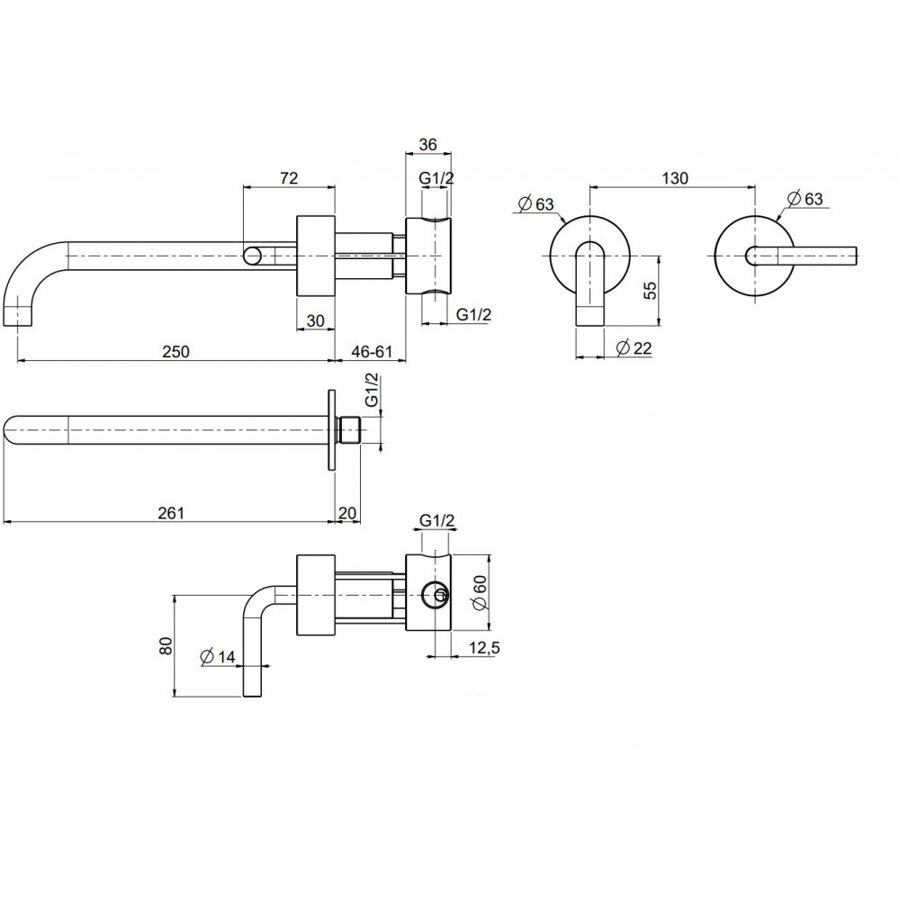 QUADRO DESIGN LEVO MEZCLADOR MURAL DE 2 AGUJEROS CON CAÑÓN DE 250 MM