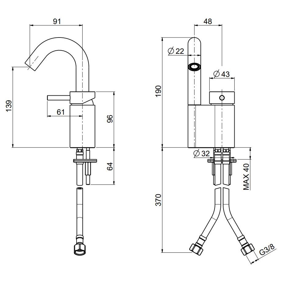 Mezclador de un orificio H.190 mm.