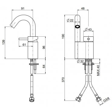 QUADRO DESIGN OTTAVO MEZCLADOR DE LAVABO DE UN AGUJERO H 190 MM