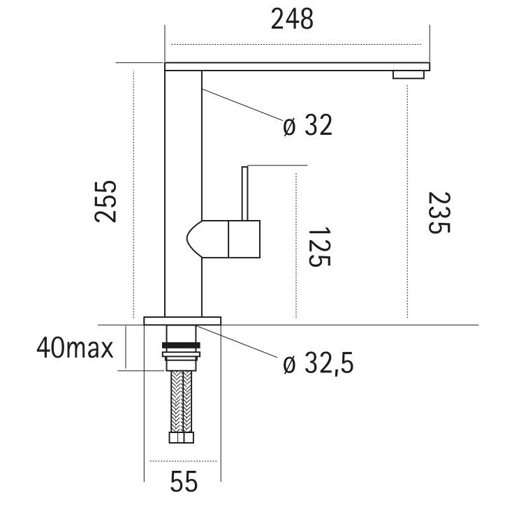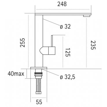 Mezclador de caño giratorio plano con palanca minimalista. Longitud del caño 248mm.