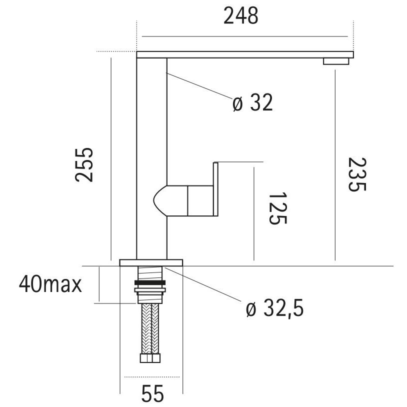 Mezclador de caño giratorio plano con palanca minimalista. Longitud del caño 248mm.