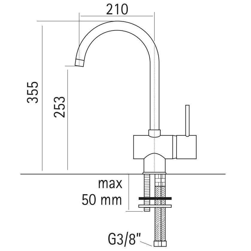Mezclador de cocina con caño giratorio.