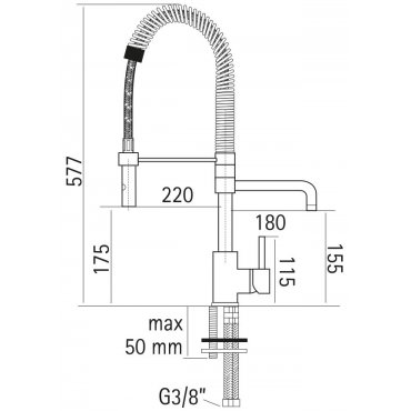 Mezclador de cocina con muelle y teleducha de latón con pulsador.