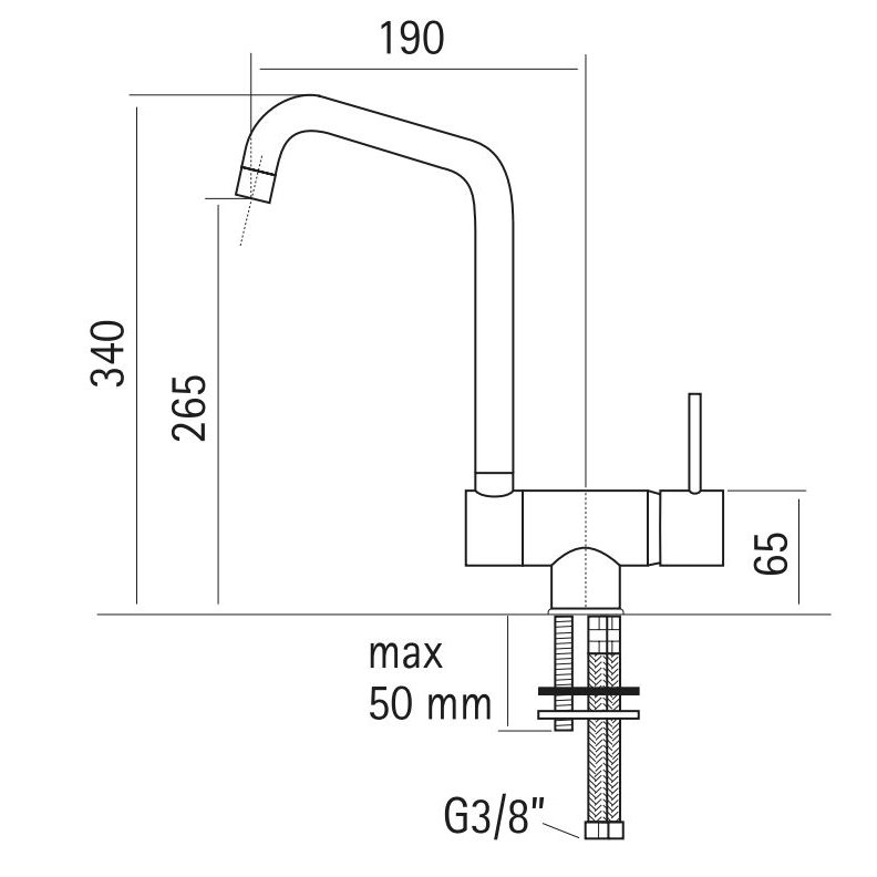 Mezclador de cocina bajo la ventana que se puede bajar hasta 6 cm.
